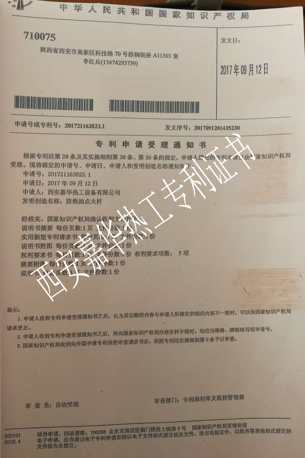 西安利来w66(中国)最给利的老牌热工设备有限公司研发的防焦油点火杆已申请国家专利